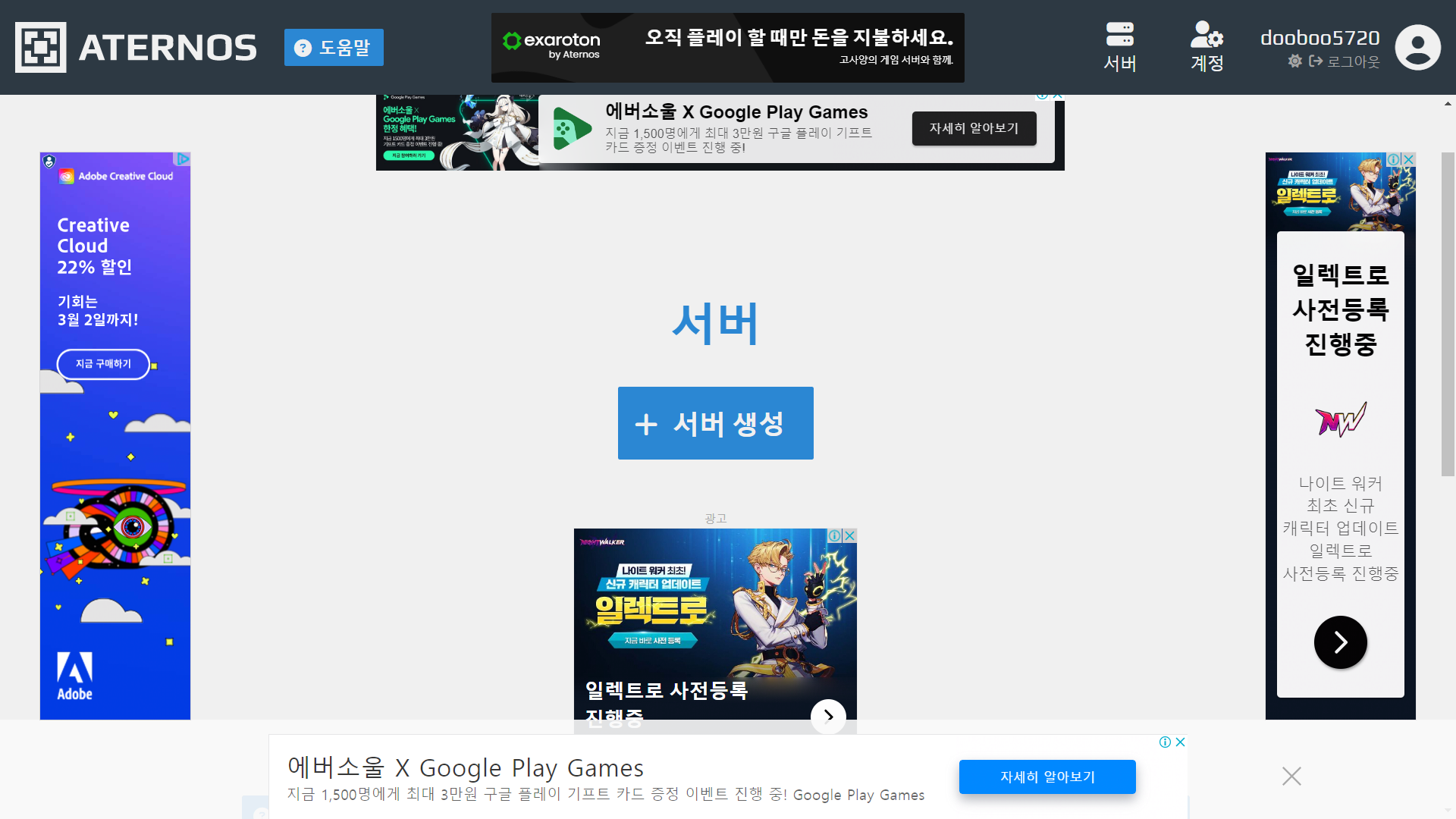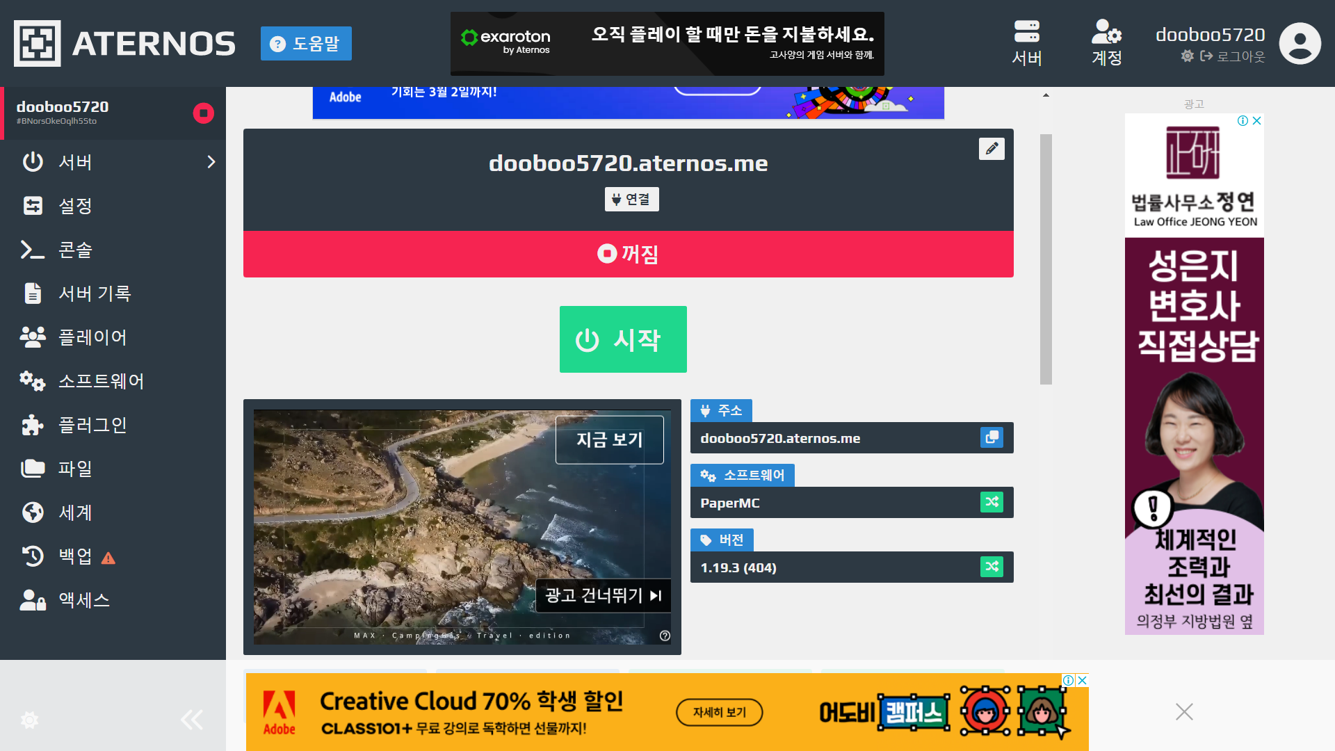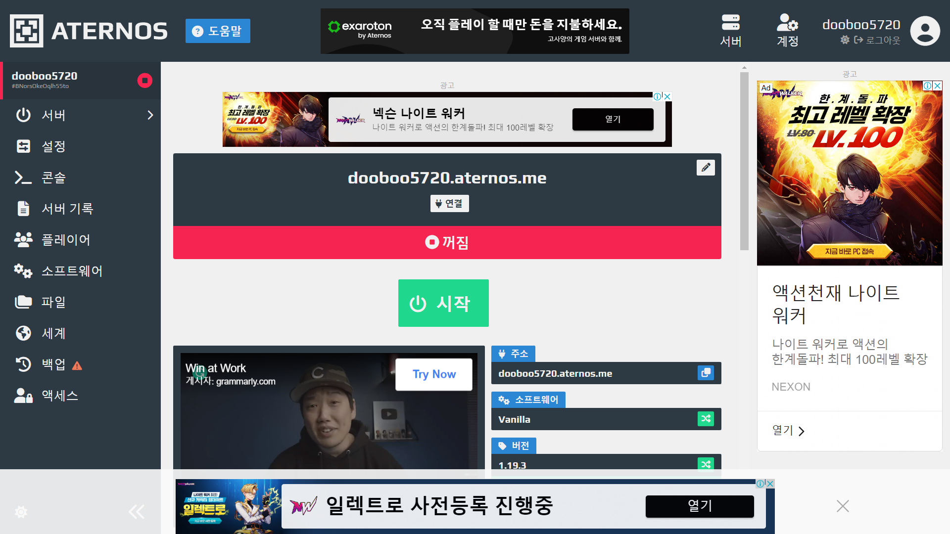 서버 호스팅 사이트 aternos를 이용하여 서버열기