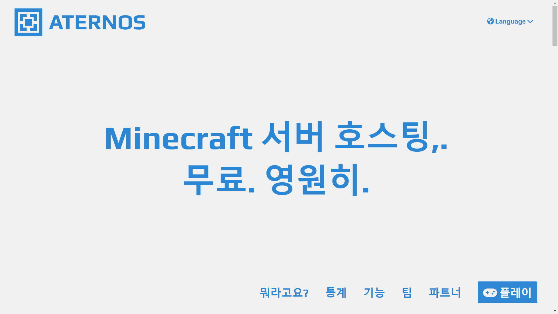 https://aternos.org/:ko/ 로 접속하여줍니다. 그리고 오른쪽 하단에 있는 "플래이" 버튼을 클릭합니다.