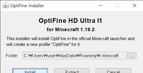 그렇게 되면 마인크래프트 런처에서 자신의 옵티파인 버전과 똑같은 버전을 설치하시고 그 버전을 들어간후