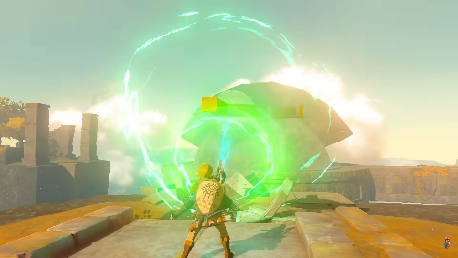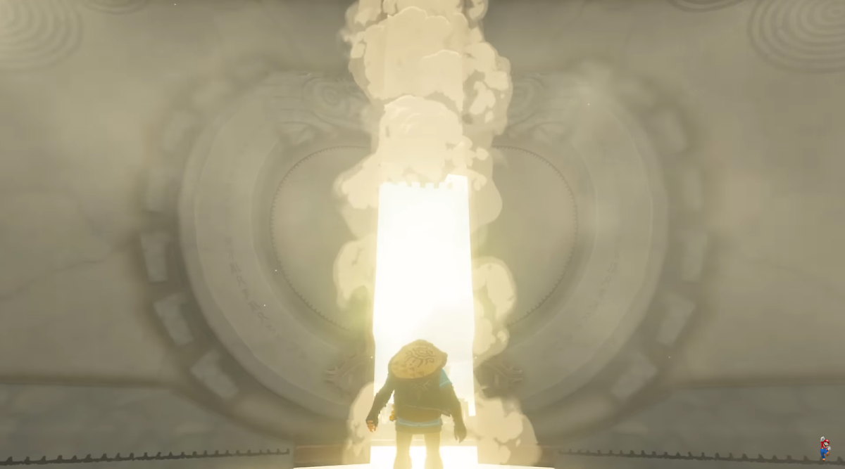 링크가 특정문을 열고 하늘로 떨어지는 장면이 나왔는데요. 아마 이번 배경이 공중일것이라는 추측만이 있을뿐 확실한