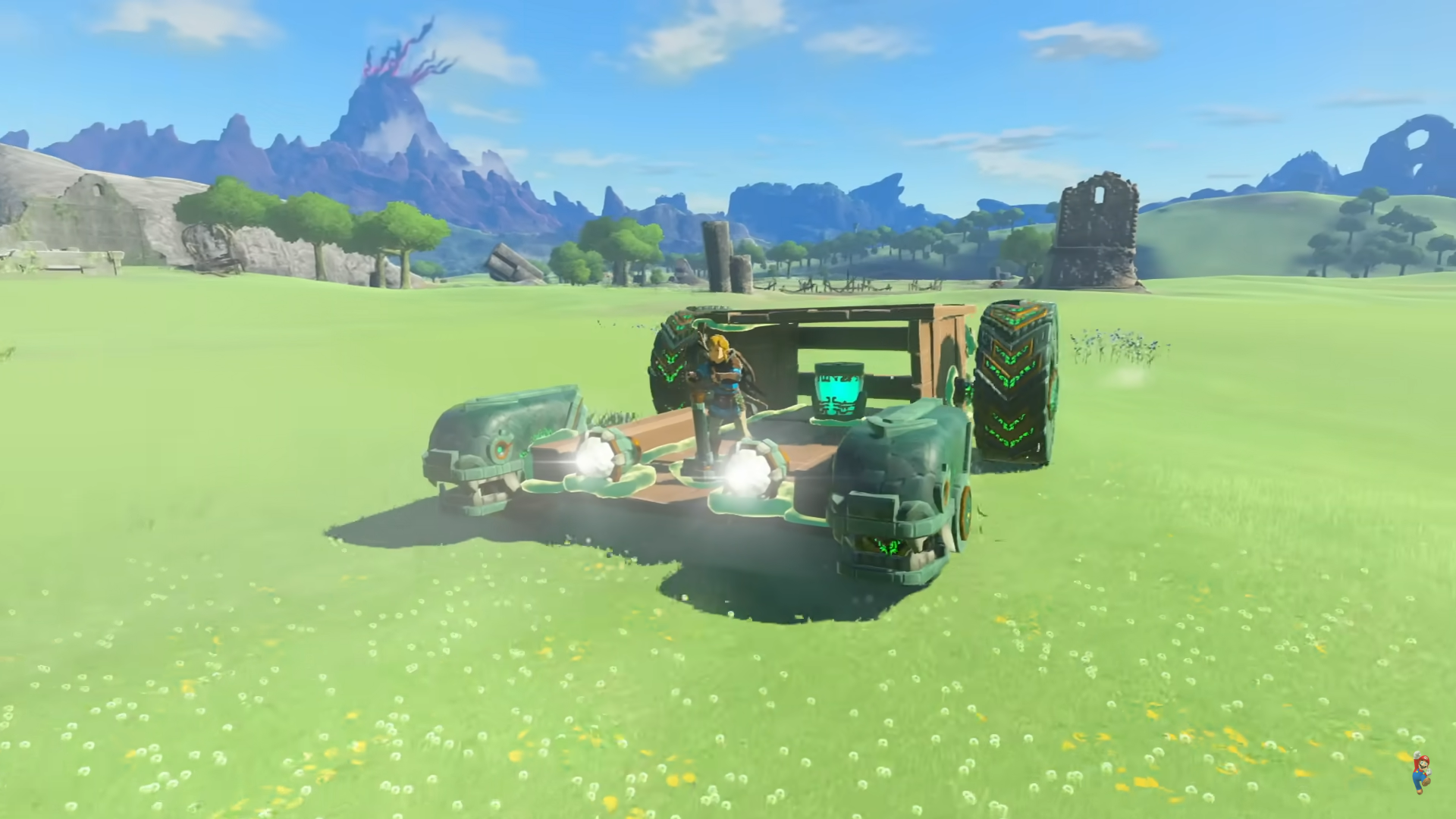 하늘섬위로 올라가는 링크라던지 이상한 기계로 보이는 새 위에 앉아 어딘가로 가는 모습이 보였는데